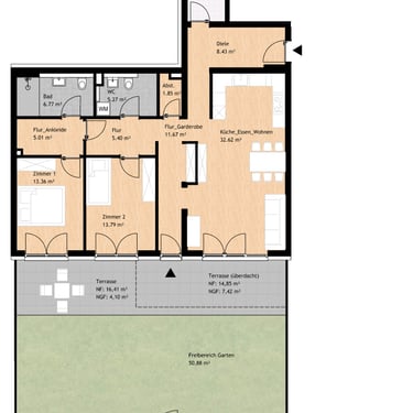 Diese Wohnung eignet sich ideal für Familien oder Gartenliebhaber, die Wohnen auf einer Ebene mit viel Freiraum suchen.